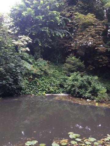 But the tree slipping into the canal also fully exposes Giant Hogweed flowering.